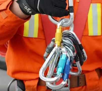 安全鉤(carabiner),也叫“主鎖”,分普通式(旋轉式)和彈簧鉤(自鎖式)兩種。消防輕型安全鉤主要材質為鋁鎂合金,消防通用安全鉤主要材質為不銹鋼。