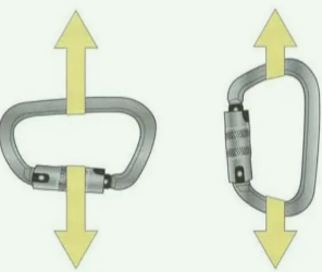 當安全鉤是懸空狀態(tài)時,調整開口向下。在安全鉤自身重力的作用下,會使荷載跟安全鉤彈力軸保持在一條線上。懸掛完安全鉤后,還要檢查鉤子是否已經(jīng)鎖緊。